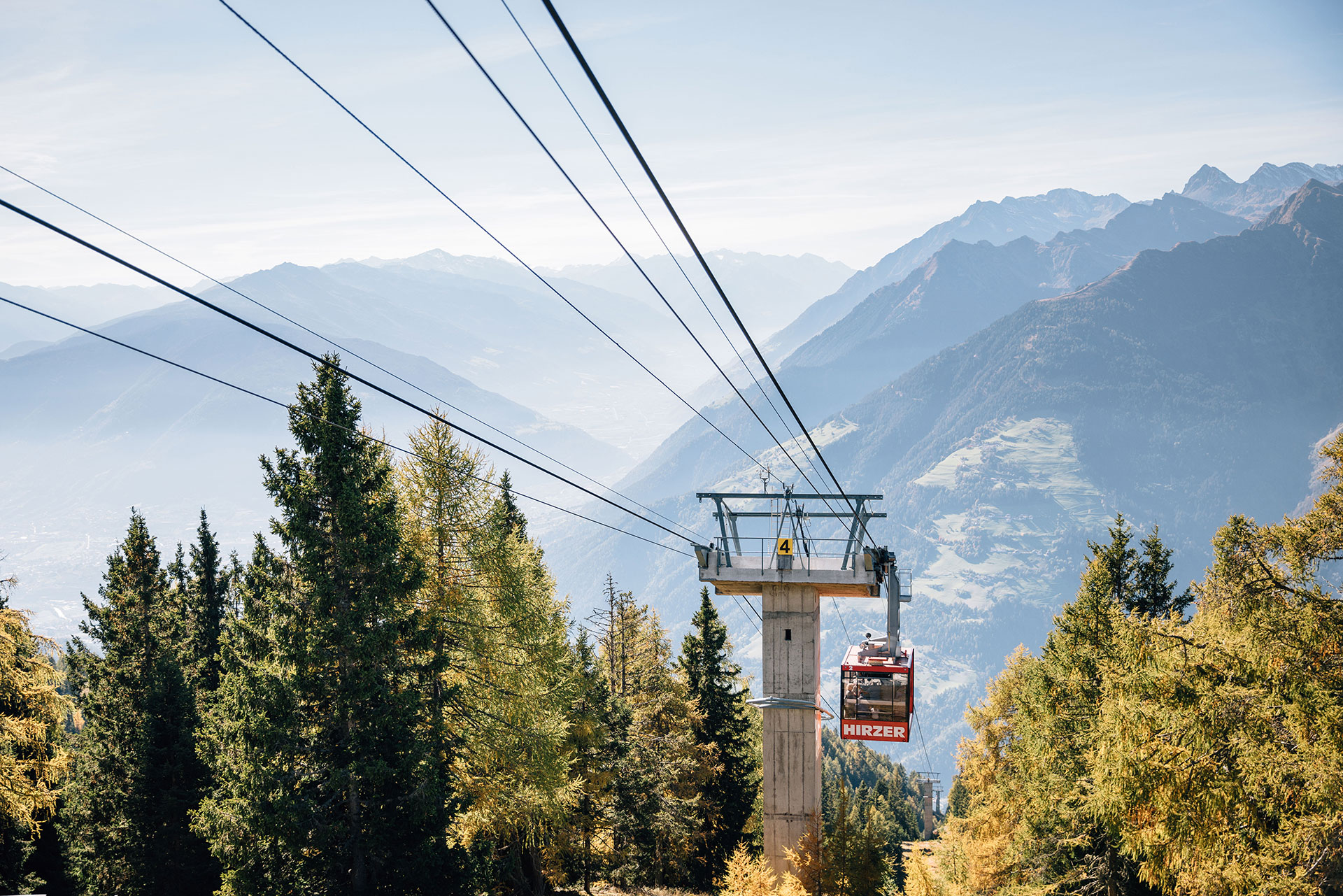 Erleben Sie mit der Hirzer Seilbahn einen schnellen Aufstieg um etwa 1.500 Meter und entdecken Sie eines der schönsten Wanderparadiese des Burggrafenamtes.