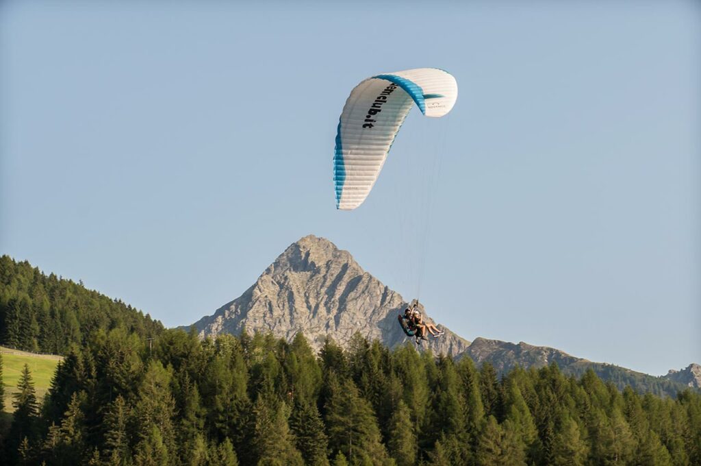 The Hirzer flying area is considered one of the most fascinating in the Alps. Here, numerous adventure-seekers in the Passeiertal valley experience their first silent glide through the air while looking down on the picturesque forests and meadows from above. The Ifinger tandem club (tel. +39 339 763 1715) the Fliegerclub Adlerhorst (Tel. +39 335 676 6891) and the Fly Hirzer (tel. +39 334 266 2424) in Saltaus offer guided tandem flights, and their information offices are located right next to the Hirzer cable car valley station.